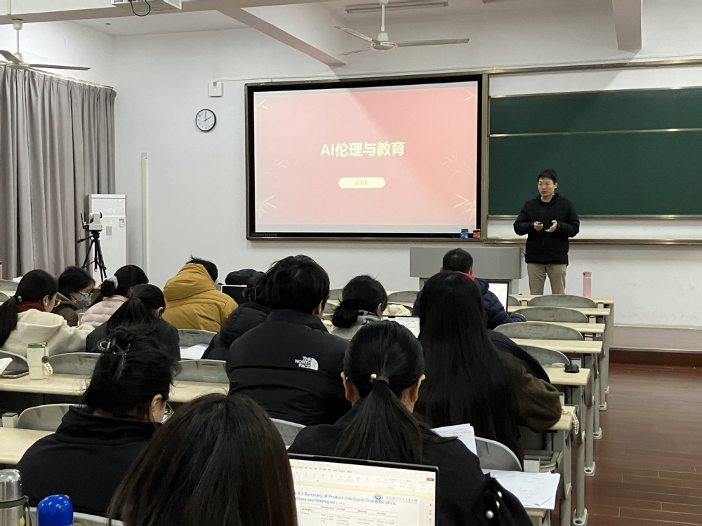 刘力军老师主讲的《AI伦理与教育》则将焦点转向技术应用的人文边界与社会责任。讲座系统剖析了AI在教育场景中可能引发的数据隐私、算法偏见、责任归属及学术诚信等核心伦理挑战。讲座通过丰富的案例,引导教师思考如何在教学实践中建立人机协同的合理模式,确保技术应用始终服务于立德树人的根本目标,为教师们负责任地使用AI工具提供了至关重要的价值判准。